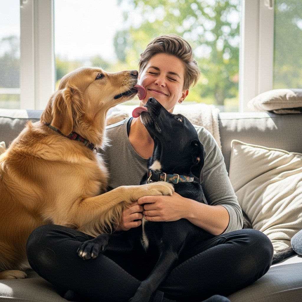 Dogs often lick you to show love, much like how puppies bond with their mothers by grooming. This action releases endorphins for both of you, making it a comforting way to strengthen your bond.