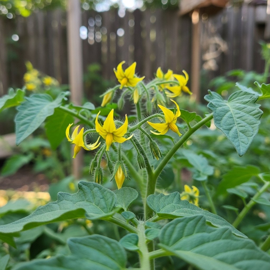 By mid-season, tomato plants should be full of yellow flowers. If there are no blooms, you won’t get any fruit later.
